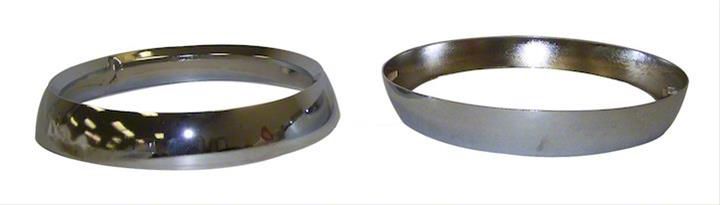 Flashy Chrome Headlight Bezels. Update the headlights on your Jeep with a bit more flash using these chrome headlight bezels. Each bezel is a brilliant chrome finish that stands out. The bezels are simple to install and can be added to select CJ5 and CJ7 models. Add the bezel to your headlight to replace the stock bezel or to replace a damaged part on your Jeep. The bezels are interchangeable and will work on either side.