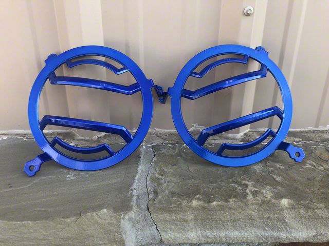 Rigid Build Quality. These headlight guards are manufactured from high-grade alloy that’s precision-machined to their final form. This method gives you a set of guards that offer a consistent look and an exact fit when installed. Wrapping up their construction is a dynamic Ocean Blue powder coat finish that adds a sporty look and corrosion protection.