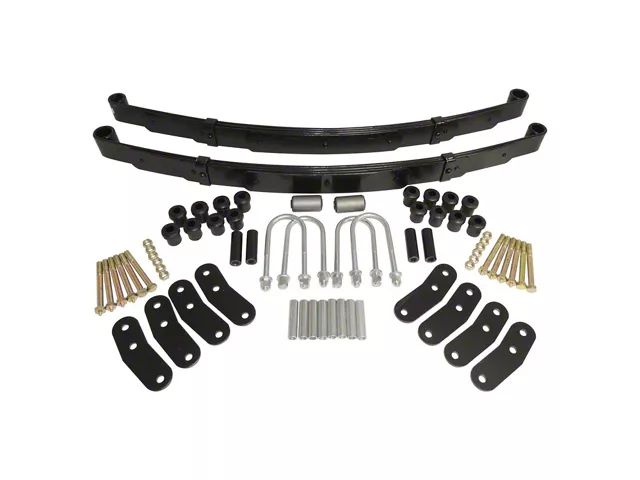 OE-Style, Direct-Fit Component. Designed to install exactly in place of your Jeep’s OE Springs, these Heavy-Duty Front Leaf Springs are designed as a direct-fit for your Jeep Wrangler YJ. Each kit contains a pair of OE-quality, 4 leaf front springs, 4 heavy-duty RT off-road shackles, new zinc coated U-bolts, New high-quality rubber bushings, and fresh hardware for installation.