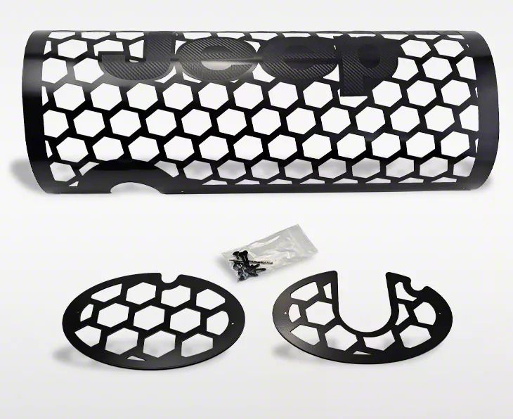 Upgrade your 2007-2018 Jeep Wrangler JK with the bold and stylish Muffler Cover Hexagon Black Powdercoat Finish , featuring a rugged black powdercoat finish and a sleek carbon fiber 'JEEP' logo inlay. Designed to complement your Wrangler's aggressive look, this premium cover is customizable with multiple carbon fiber options, allowing you to add a personal touch to your build. Engineered for a perfect fit and easy installation, it’s the ideal way to showcase your Jeep pride while adding a layer of protection and flair to your exhaust system.