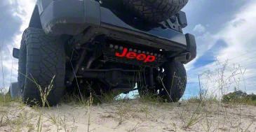 Red Carbon Fiber Inlay with Jeep Branding. The center of the Hexagon Muffler Cover with Red Carbon Fiber Inlay; Black features a precision-cut red carbon fiber insert forming the "JEEP" logo, seamlessly blending high-tech material with graceful styling. The vibrant red accents deliver showroom-worthy pop while honoring your build’s off-road credentials.