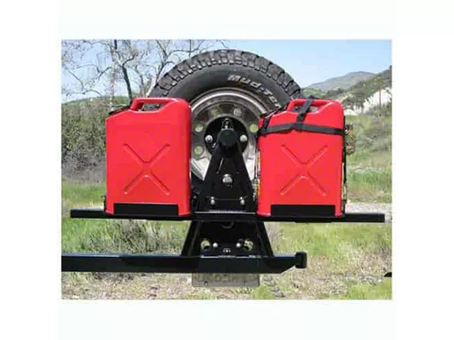 Optimized Hitch Use. Prepare yourself for long road trips and emergency on the road with this Hitchgate Red Jerry Can Kit. Made from strong metal, it is a durable accessory that can securely fasten 2 Jerry cans for emergency refueling, hydration, or any other tasks that you might need liquids on the drive. It features durable manufacturing, a stable design, and a low-profile black coating as to match the look and style of your vehicle.