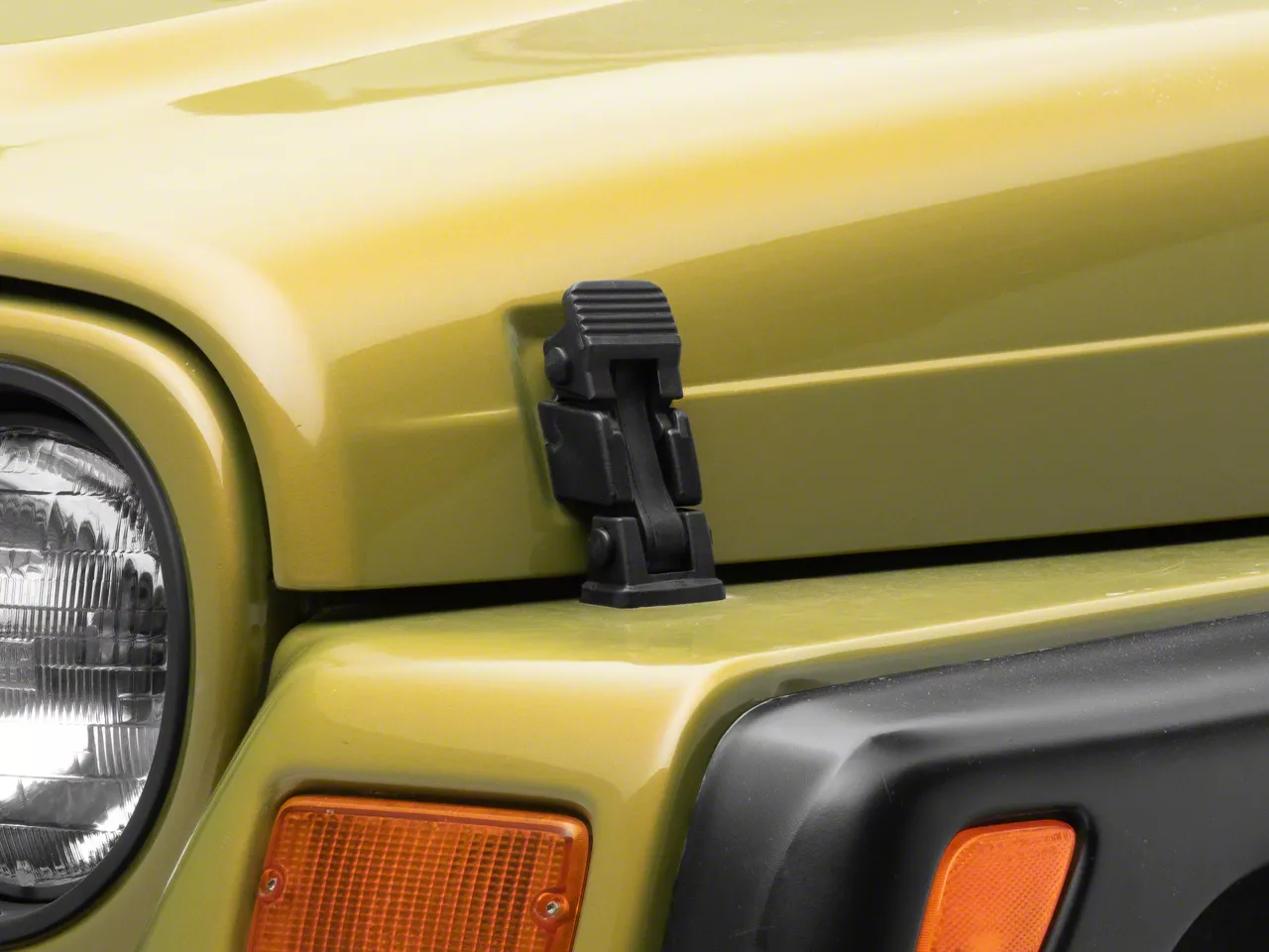 Keep the Latch On. The rugged simplicity of your TJ means that Jeep kept the traditional hood latches for both form and function. Unfortunately, over time these can break, or the rubber can lose flexibility. When this happens, the hood latches are hard to open or close, and driving if the hood is not securely closed is a concern for you and other motorists. This pair of Hook and Catch Hood Latches from ExtremeTerrain are direct replacements, ready to make latching your hood a far easier experience.