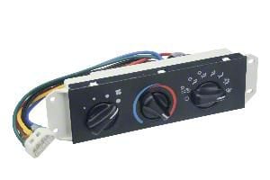 HVAC Heater Control Panel. The HVAC Heater Control Panel is a high-quality replacement designed to seamlessly fit your 1999-2004 Jeep Wrangler TJ models with A/C. Featuring a matte black finish with matte white text and symbols, this control panel provides clear readability and smooth operation, making it an ideal upgrade for your vehicle's heating and cooling system.