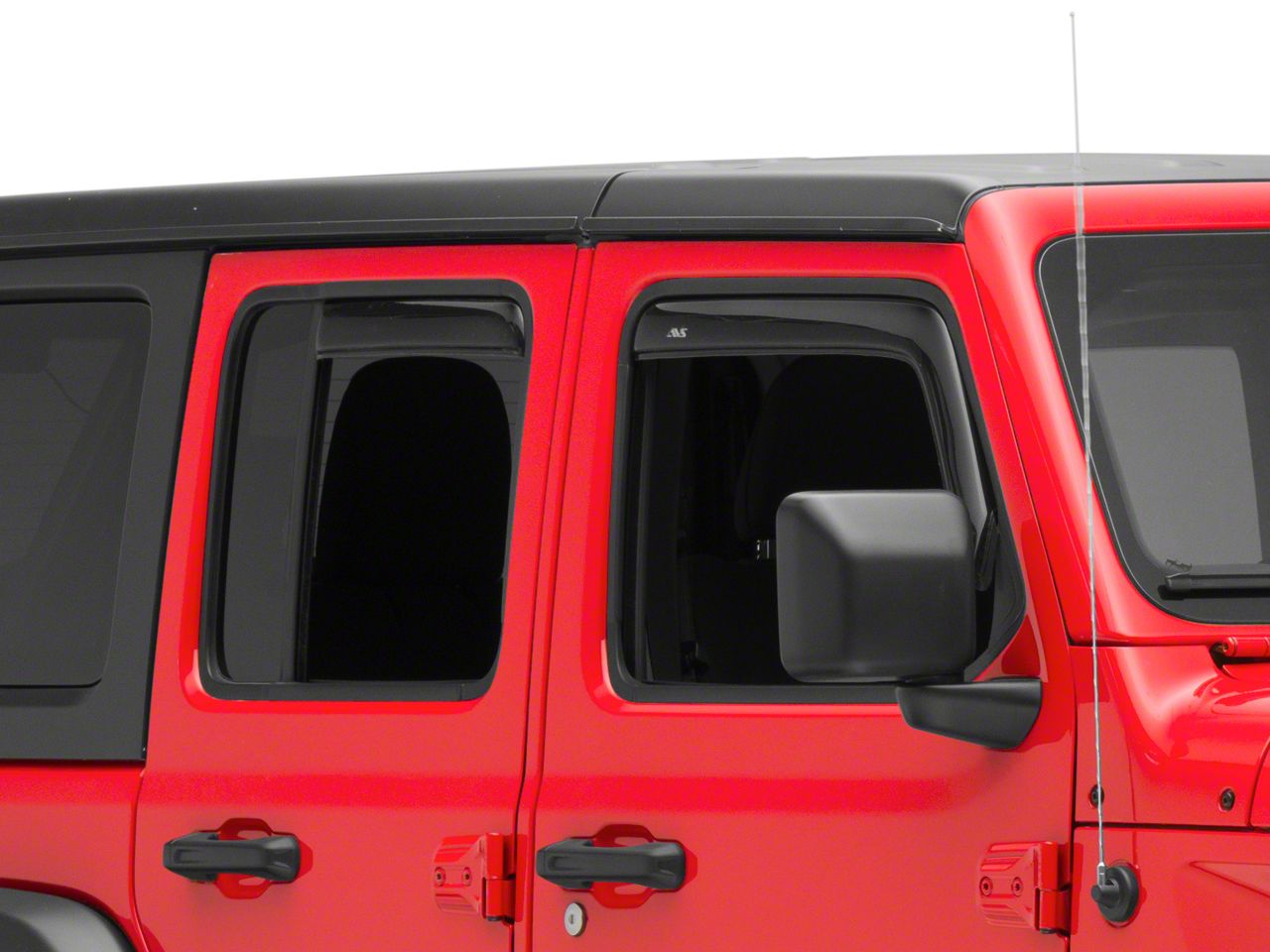 Application. These Front and Rear In-Channel Ventvisor Dark Smoke Window Deflectors are designed to fit all 2018-2026 Jeep Wrangler JL 4-door models.