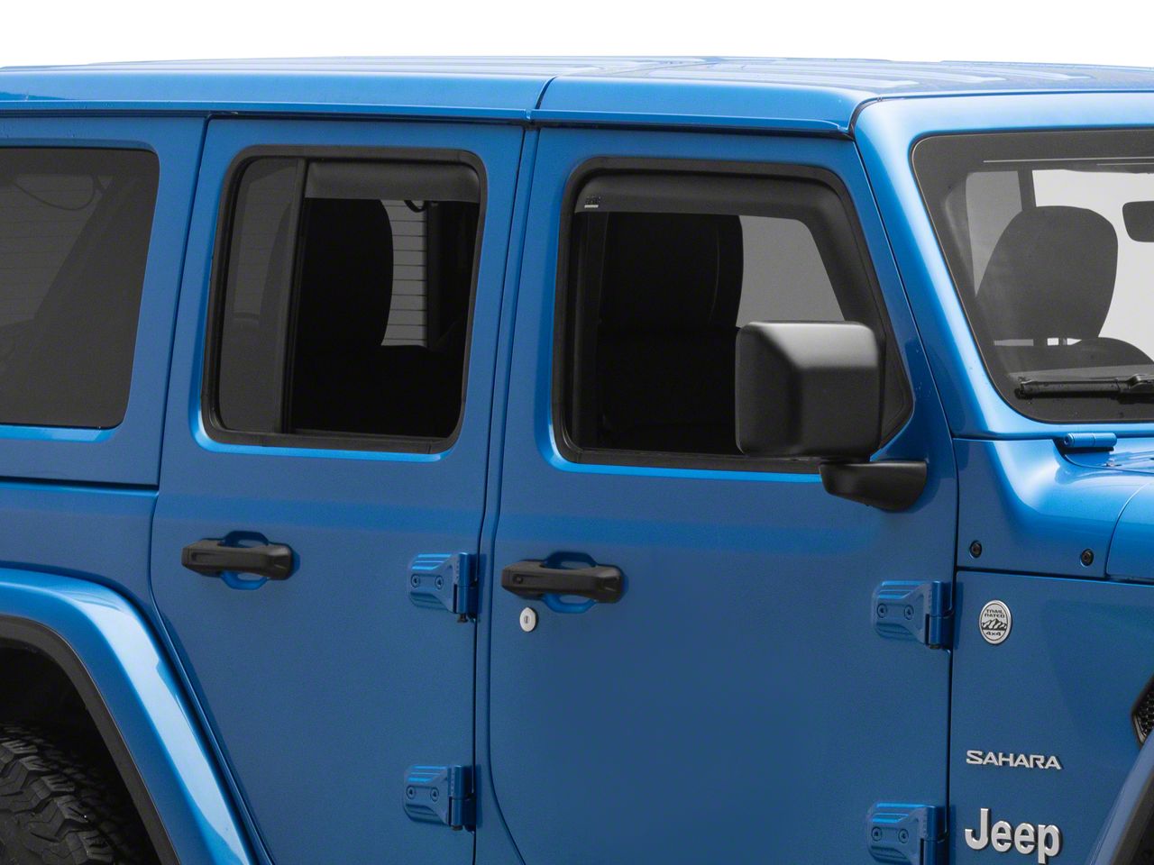 Application. These matte black In-Channel Window Visors fit all 2018-2026 Jeep Wrangler JL 4-Door Models.