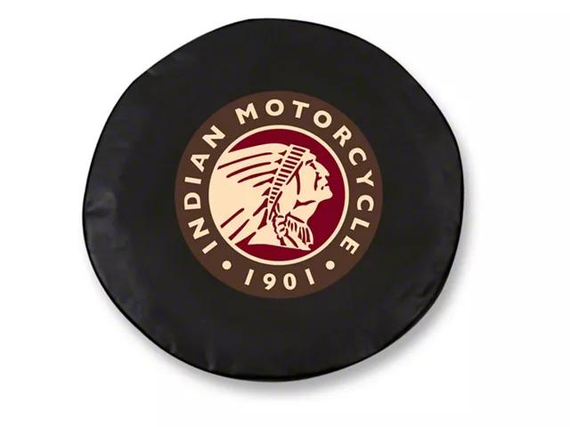 Lightfast and High-Strength Construction. Crafted using commercial-grade vinyl, this spare tire cover is built to withstand long-term outdoor use. The elasticized back hem and bead-welt seam ensure a snug fit on your tire for a neat and appealing look. Additionally, the Indian Motorcycle Logo was printed on the black vinyl finish using UV-resistant inks for a sharp image that will not fade with prolonged off-road use.