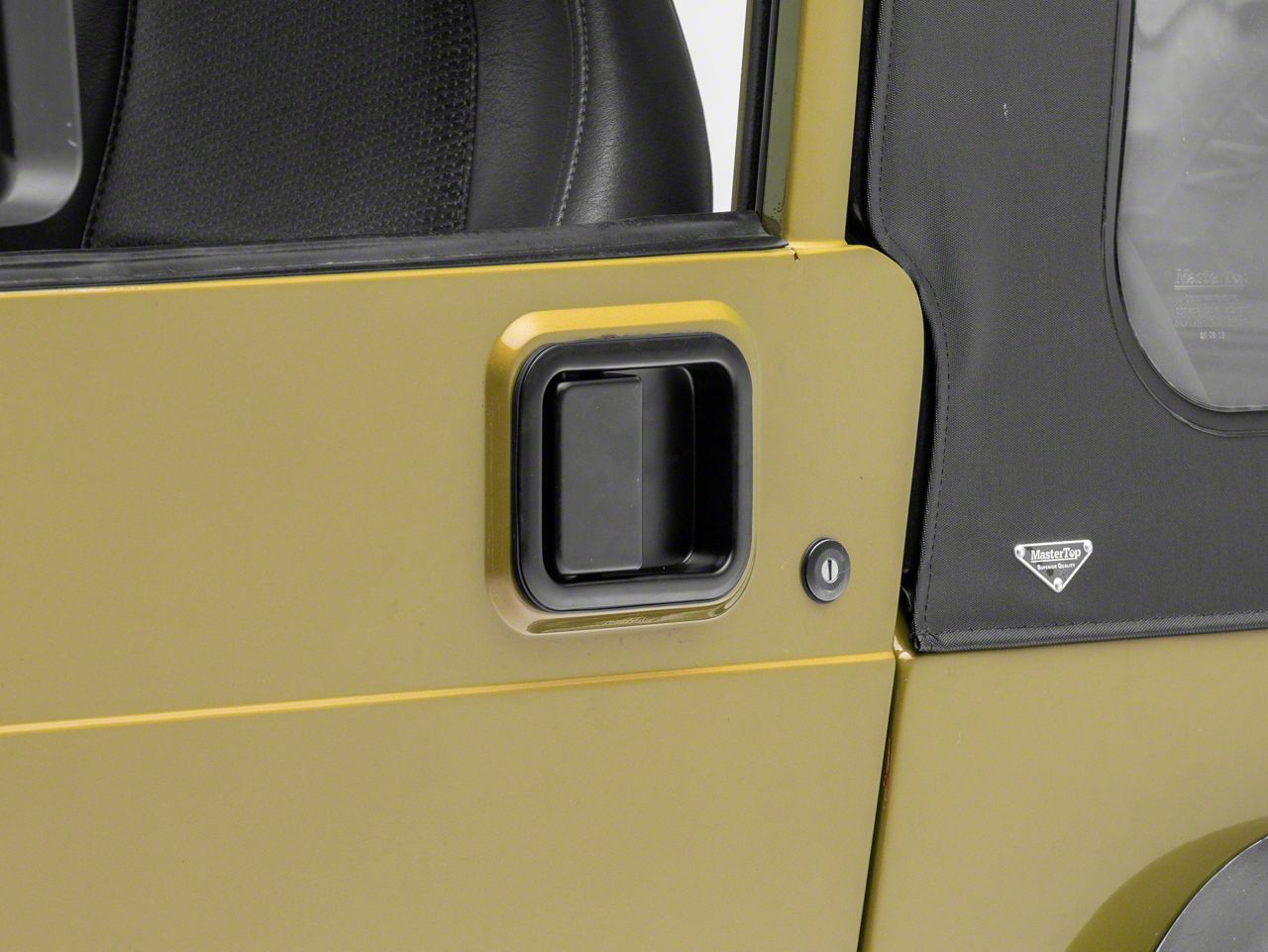 Enhancing Door Mechanism. If you’re having trouble opening and closing your Jeep Wrangler door, these interior and exterior handles may solve your problem. They’re made of industry-standard materials and feature an appealing matte black finish that can suit a wide variety of vehicles. These items help restore the proper operation of your door, allowing you to open and close them more easily.