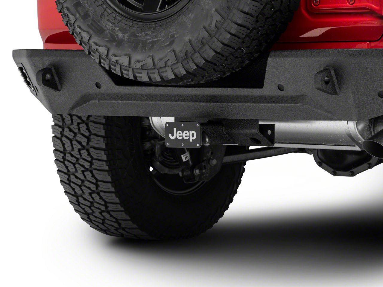 Black Laser Etched. This hitch cover comes with the laser-etched Jeep logo to instantly show off your pride on the trails. It measures 14 inches by 10 inches with a 2-inch diameter in a stainless steel construction.