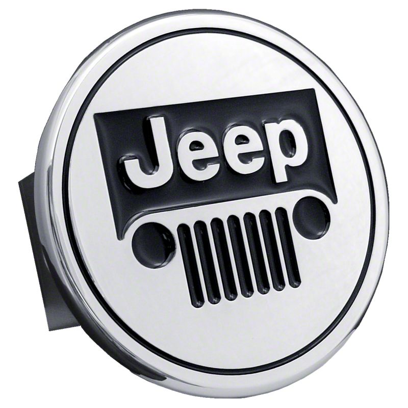 Premium Grade Chrome Hitch Cover. Keep your receiver hole free from dirt, dust, and debris with the Jeep Hitch Cover; Chrome. This hitch cover fits all 2-inch receivers, comprising of an epoxy-filled, chrome plate with the iconic Jeep logo.