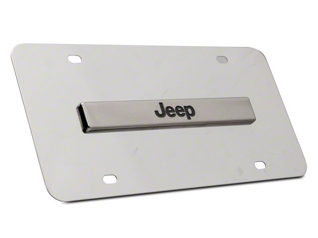 Jeep Branded License Plate. Show off your Jeep pride to the masses with the Jeep License Plate; Chrome on Chrome. This unit is constructed using a rugged chrome on chrome finish with the iconic Jeep logo at the center.