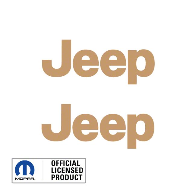Matte White Logo. Finished in a Tan/Beige, this side logo adds a subtle yet striking touch to your Jeep, enhancing its appearance with a clean and modern look. Its simple, drilling-free installation style means you can easily apply this emblem without any modifications or the use of tools, preserving the integrity of your vehicle's bodywork.