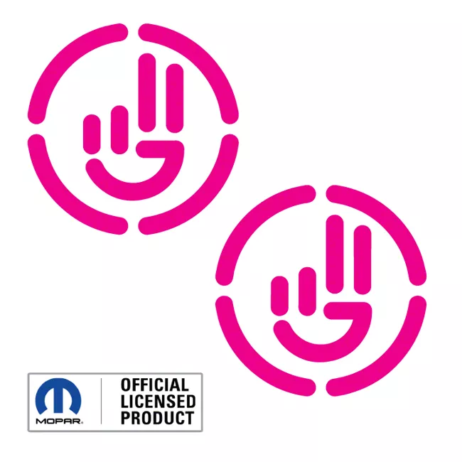 Official Mopar Licensed Product. Made for the Jeep Wrangler TJ, JK, and JL models, this Jeep Wave with Circle comes in a hot pink finish. Built to give your ride a cool and stylish look, this Jeep wave with circle, this product is an officially licensed Mopar product.