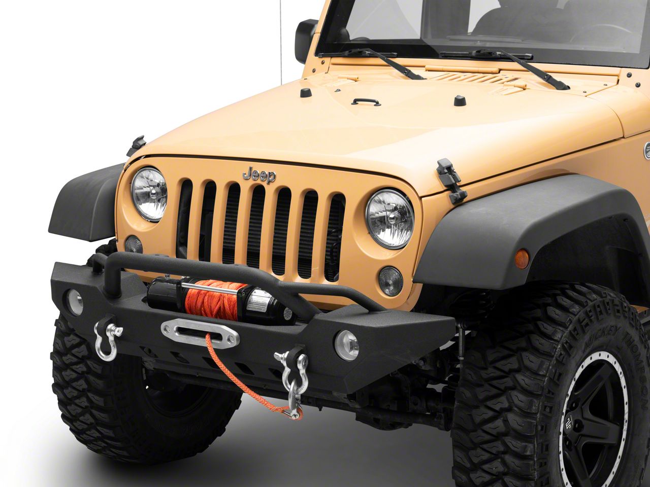 Application. This HD Front Bumper with built-in 10x4.5" winch plate is specifically designed for use on 2007-2018 Jeep Wrangler JK models.