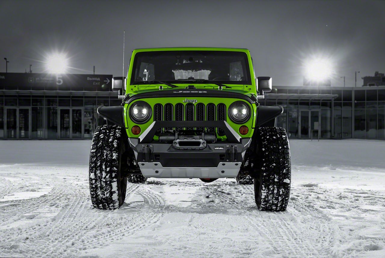 Application. This Rival 4x4 Stubby Aluminum Front Bumper with Skid Plate and Winch Mount is specifically designed to be used on all 2007 to 2018 Jeep Wrangler JK models.