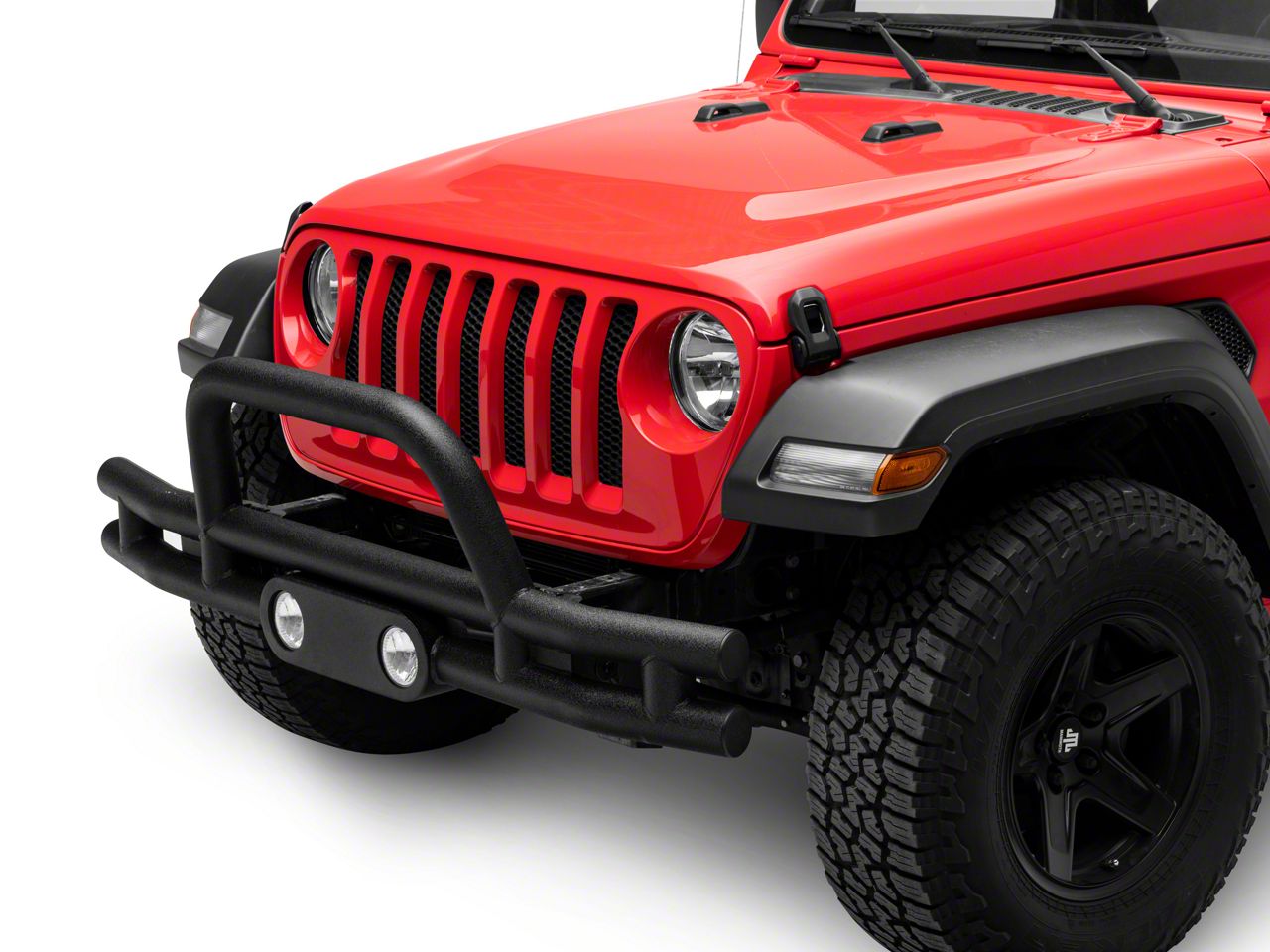 Double Tube Front Bumper with Stinger; Textured Black (18-26 Jeep Wrangler JL)Find parts that fit my vehicle