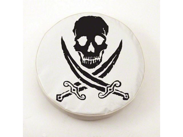 Keep Your Spare Tire Clean in Style. If you’re in the market for a spare tire cover but want something with a bit more style, then this Jolly Roger White Spare Tire Cover is exactly what you need. This cover features the Jolly Roger skull and crossbones graphic with two cutlasses in place of the crossbones in fade-resistant black ink. This design, when combined with the cover’s white finish, provides a striking design cue that’s a definite step up in style from the usual plain cover. What’s more, this tire cover’s durable build quality ensures exceptional protection against debris and damage when on an off-road adventure.