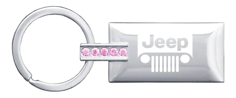 Classy and Sassy Key Holder. Keep your keys organized in a classy manner with this Jeep Grille Jeweled Rectangular Key Fob. This key fob takes the familiar rectangular pendant design and adds a stem accentuated with 5 crystal pieces available in classic clear and fabulous pink. This design, when combined with the iconic laser-etched Jeep grille logo, gives offers loads of luxurious style that’s sure to put a smile on any Wrangler owner’s face. What’s more, this key fob includes a handsome black gift box, making it an ideal gift for the holidays and special occasions.