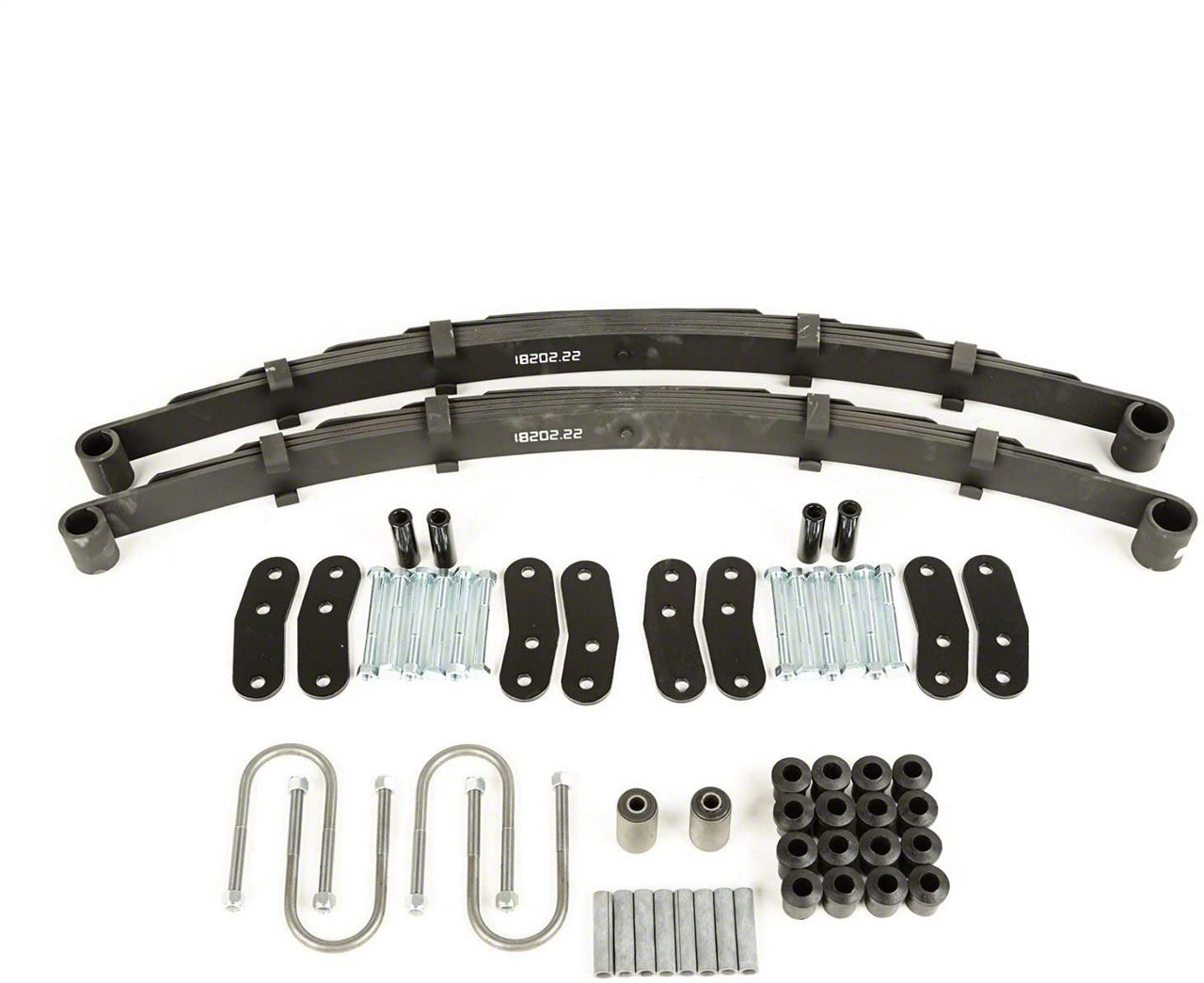High-Strength Construction. Crafted from premium materials, this Rear Leaf Spring Kit is built for an off-road beating. The heavy-duty construction exhibits excellent strength and high structural integrity to handle your vehicle’s off-road demands. The multi-leaf configuration creates more flex at the leaf ends and distributes loads more evenly over a greater area for improved load-carrying capacity.