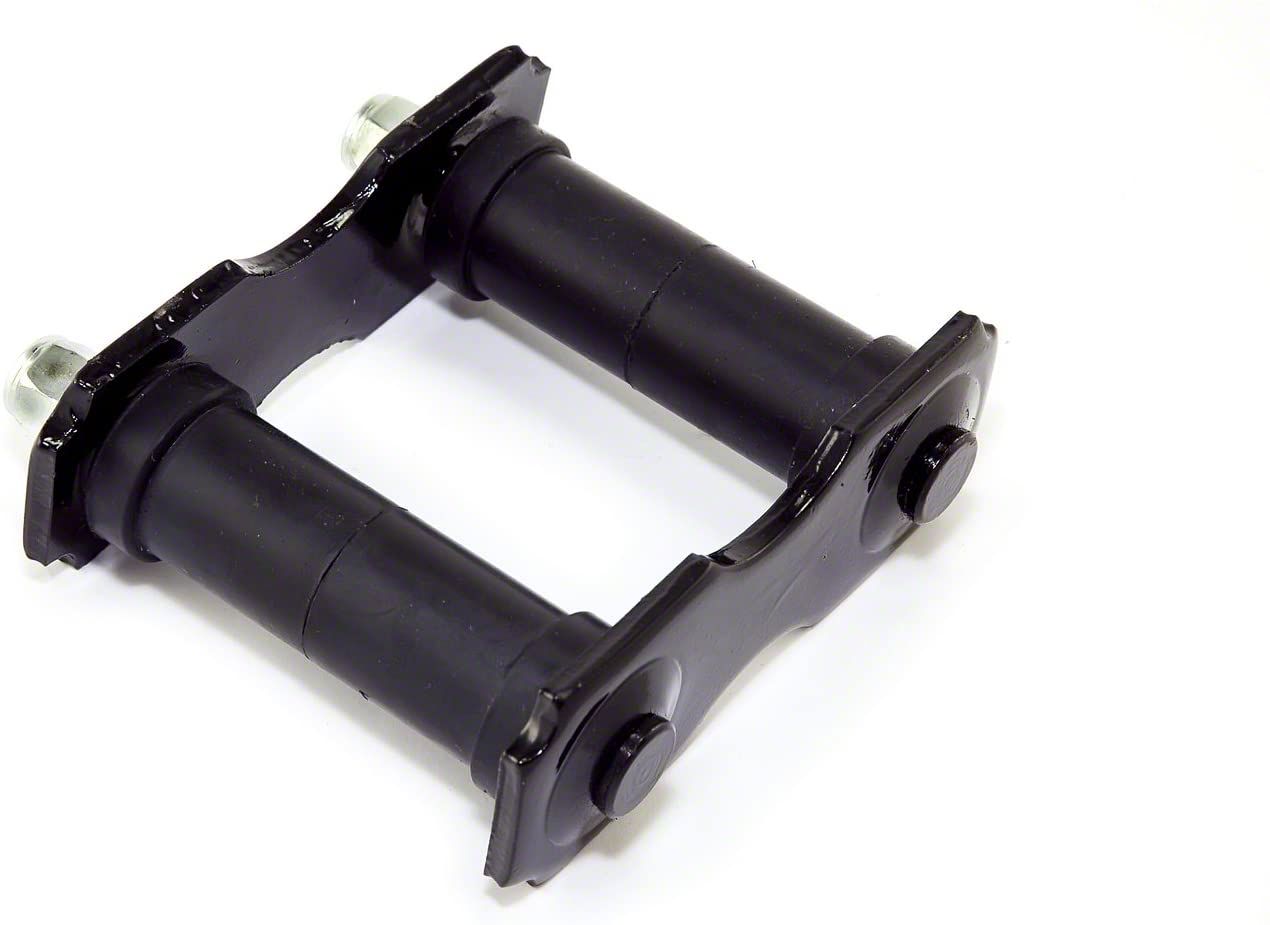 Superior Construction. This kit’s rear leaf spring shackle is made of durable steel to withstand the abuse from daily use. It is also applied with a black coating to ensure a corrosion-resistant build. The shackle is also equipped with black rubber bushings that are guaranteed to handle harsh temperatures and driving conditions, preventing them from cracking and deforming.