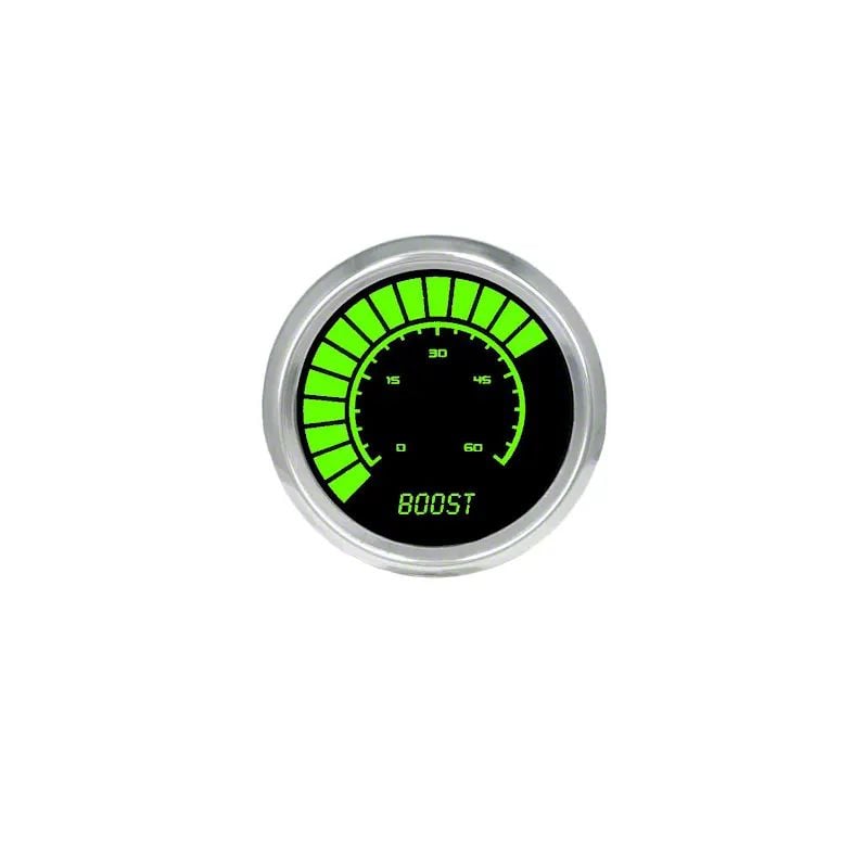 LED Digital Boost Gauge with Chrome Bezel; 2-1/16-Inch; Green; 0-60 PSI (Universal; Some Adaptation May Be Required)