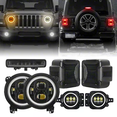 Complete Lighting Solution. Illuminate and enhance your Jeep Wrangler's presence with the all-inclusive LED Halo Headlight, LED Fog Light, LED Third Brake Light and LED Tail Light Package. This comprehensive package isn't just an upgrade, it's a transformation that elevates your vehicle's lighting aesthetics, visibility, and safety.