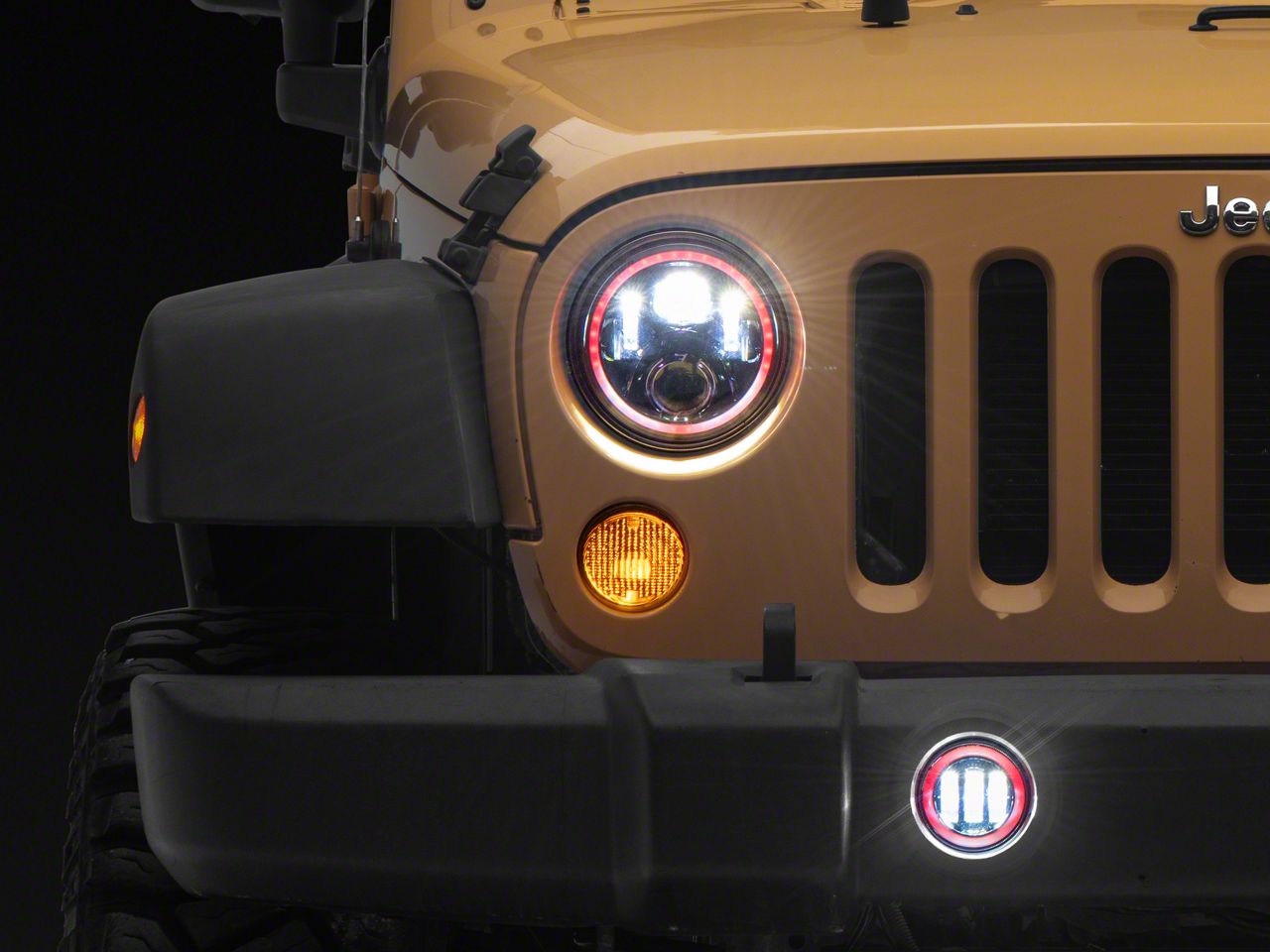 Application. This LED RGB Color Changing Halo Headlights with Fog Lights in Black Housing and Clear Lens fits all 2007-2018 Jeep Wrangler JK models.