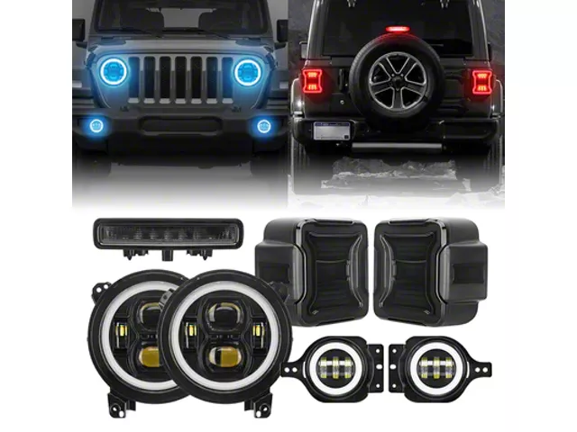 Application. The LED RGB Halo Headlights, RGB Fog Light, LED Third Brake and LED Tail Light Package fit 2018-2026 2018-2026 Jeep Wrangler JL models with Factory Halogen Tail Lights.