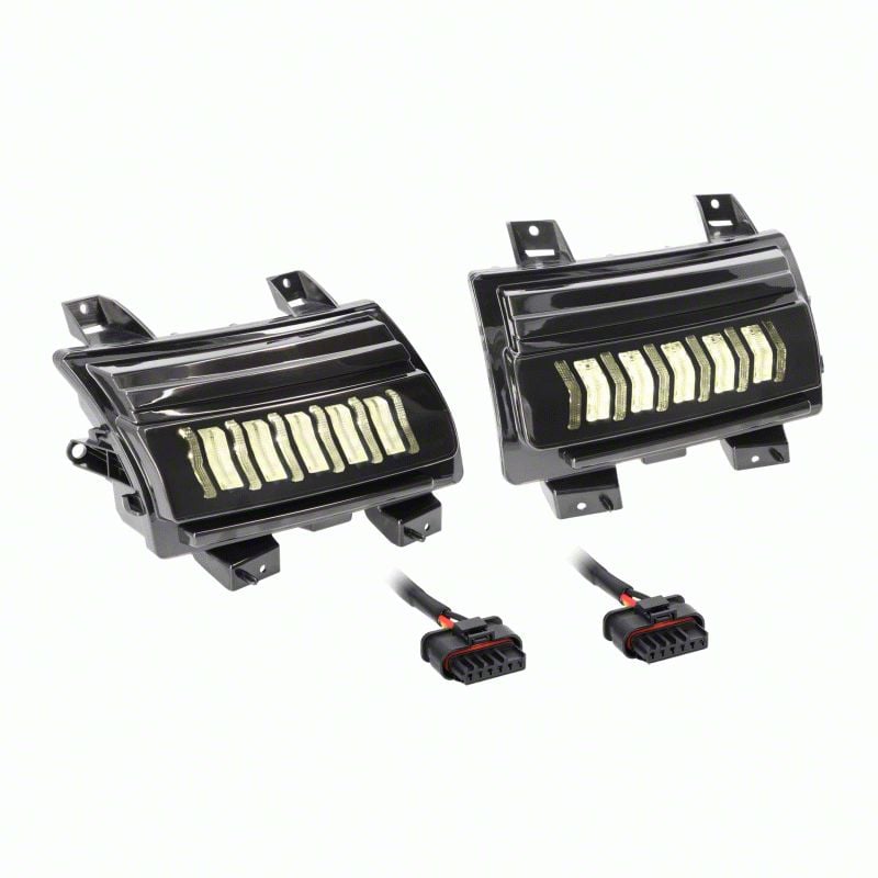 High-Performance LED Signal Lights. The LED Turn Signal Lights (Smoked) replace old or broken OE signal lights, providing enhanced visibility and safety. Featuring 18 amber sequential flash LEDs and 30 white running lights, these lights deliver better performance and a modern aesthetic for your vehicle.