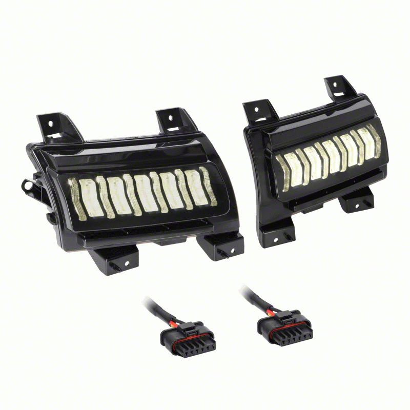Rebreather-Style Ventilation. Paired with smoked lenses, these LED Turn Signal Lights add a sleek and modern touch to your Jeep Wrangler JL Sport. The integrated 30 white running LEDs ensure maximum brightness and visibility during daytime driving. Constructed with rebreather-style ventilation, these lights are built to withstand various weather conditions and prevent moisture build-up.