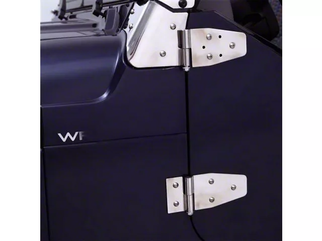 Simple Installation. Designed as direct replacement parts for your factory hinges, the Jeep Wrangler Lower Door Hinge Brackets secure straight into the holes that are already drilled into your Jeep. That means you can put the electric drill away as all you need to install these hinges is an Allen wrench and a little bit of elbow grease.