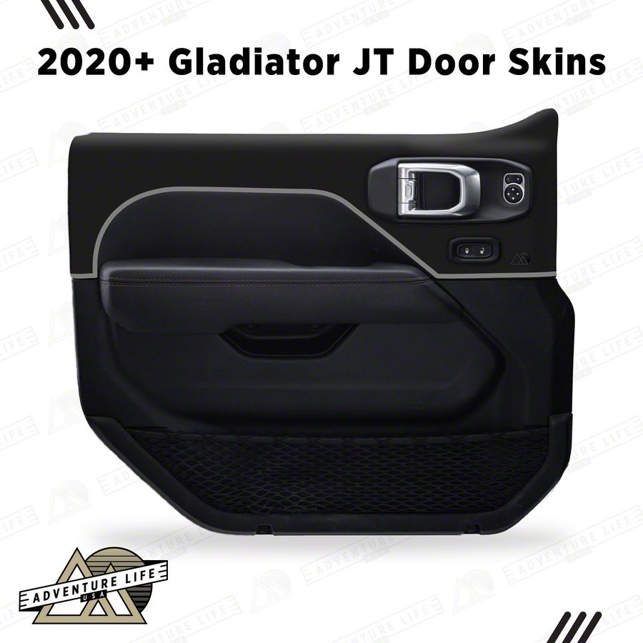 Matte Black Interior Door Skins; Front; Grey Outline (18-26 Jeep Wrangler JL w/ Power Locks & Windows)Find parts that fit my vehicle