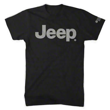 Jeep. This great looking black Short Sleeved T-Shirt is a must have for all Jeep enthusiast. Officially licensed, this graphic tee features the Jeep® Logo in grey across the chest with the Jeep grille logo on the left sleeve. This T-Shirt makes the perfect gift for yourself or the fellow Jeep lover in your life.
