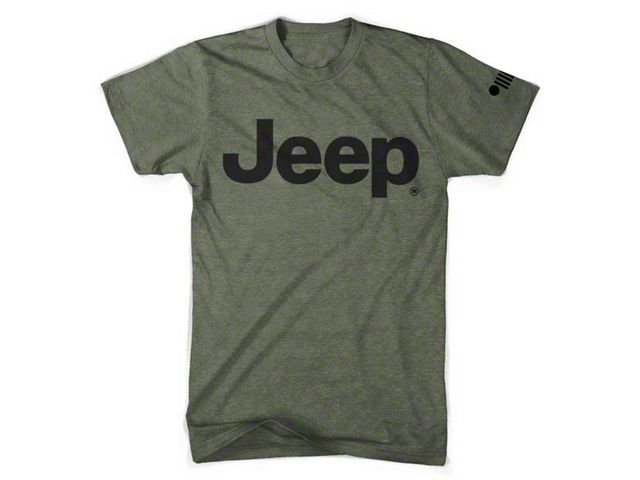 Jeep. This great looking Men's Jeep Logo T-shirt; Army Green is a must have for all Jeep enthusiasts. Officially licensed, this graphic tee features the Jeep® Logo in black across the chest with a small Jeep grille logo on the left sleeve. This T-Shirt makes the perfect gift for yourself or the fellow Jeep lover in your life.