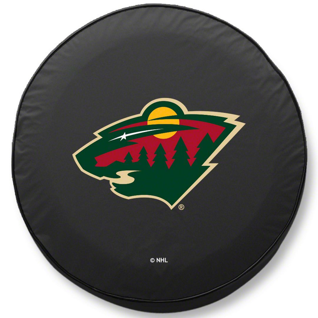 Minnesota Wild Pride. Boost your Wrangler’s distinguished presence by brandishing your favorite NHL team on its spare tire cover. This Minnesota Wild Black Spare Tire Cover proudly shows your team spirit while protecting your spare tire against harsh outdoor elements. Moreover, it creatively sports the Wild logo of the head of the black bear with the Minnesota area scenery, green pine trees, a wheat-colored river, a red sky, yellow sunset, and a white shooting star.