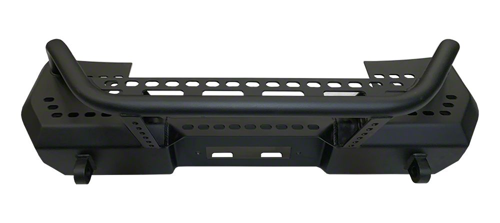 Leveled-Up Off-Road Bumper. Not all stubby front bumpers are created equal. For maximum off-roading, you need this MOD Series Stubby Front Bumper with Brush Guard; Black Finish. Unlike standard stubby front bumpers, this stubby bumper incorporates a fully welded brush guard onto its structure. This brush guard delivers extra protection against just about any hazards you might encounter when out on the trails. This bumper assembly also comes with a winch plate rated for a standard 8,000 to 9,000-pound recovery winch. This feature, when combined with a pair of fully welded D-ring mounts and integrated off-road jack lift points, makes this assembly the perfect choice for all your off-road adventures.