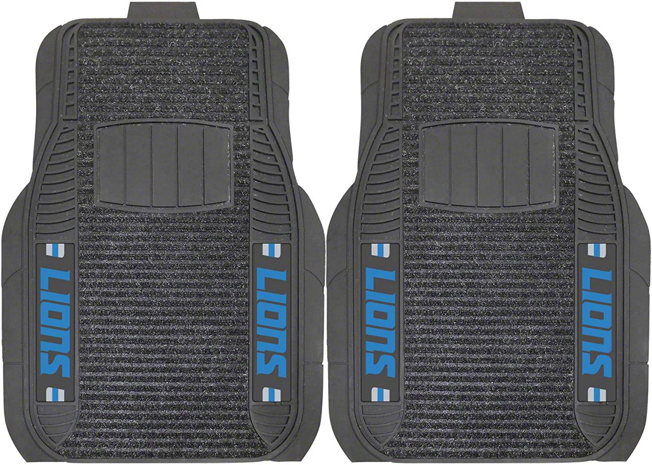 Application. These Molded Front Floor Mats with officially-licensed Detroit Lions logo feature a universal design so they will fit most makes and models of vehicles. These Mats can be trimmed to fit if necessary. Sold as a set of two Mats.
