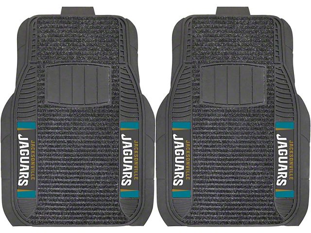 Application. These Molded Front Floor Mats with officially-licensed Jacksonville Jaguars logo feature a universal design so they will fit most makes and models of vehicles. These Mats can be trimmed to fit if necessary. Sold as a set of two Mats.
