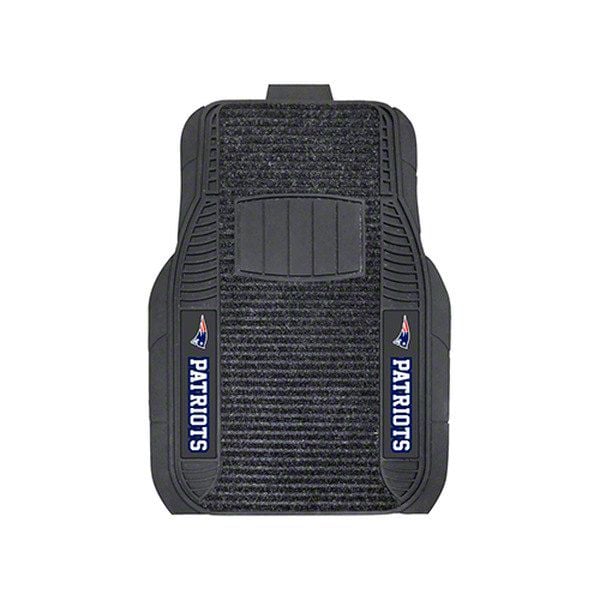 Application. These Molded Front Floor Mats with officially-licensed New England Patriots logo feature a universal design so they will fit most makes and models of vehicles. These Mats can be trimmed to fit if necessary. Sold as a set of two Mats.