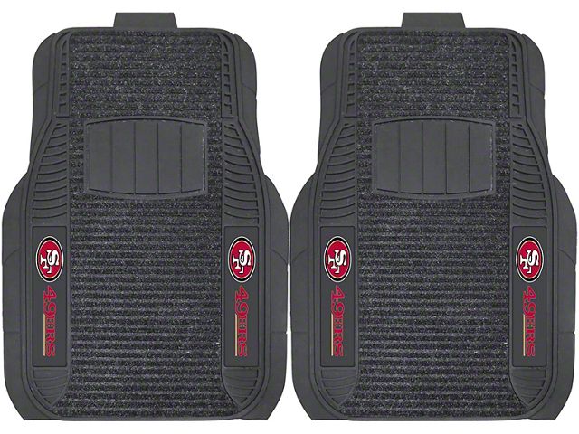 Application. These Molded Front Floor Mats with officially-licensed San Francisco 49ers logo feature a universal design so they will fit most makes and models of vehicles. These Mats can be trimmed to fit if necessary. Sold as a set of two Mats.