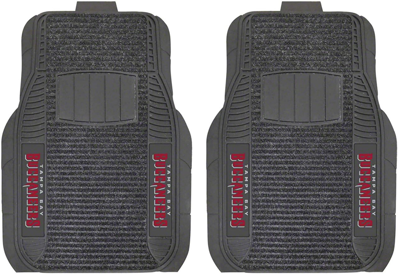 Application. These Molded Front Floor Mats with officially-licensed Tampa Bay Buccaneers logo feature a universal design so they will fit most makes and models of vehicles. These Mats can be trimmed to fit if necessary. Sold as a set of two Mats.