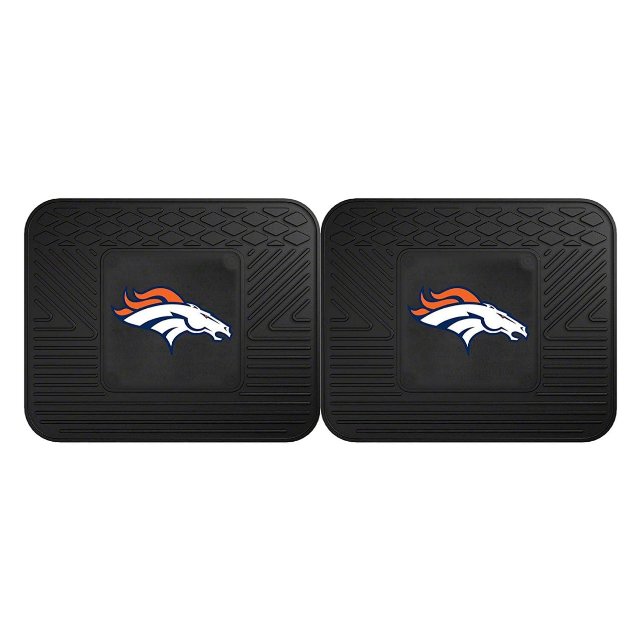 Application. These Molded Rear Floor Mats with officially-licensed Denver Broncos logo feature a universal design so they will fit most makes and models of vehicles. Sold as a set of two Mats.