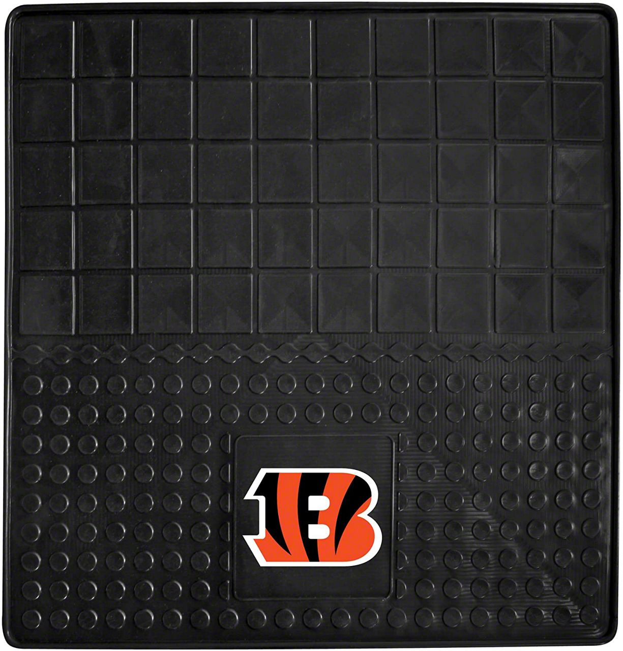 Application. This Molded Trunk Mat with officially-licensed Cincinnati Bengals logo features a universal design so it will fit most makes and models of vehicles. Measures 31 x 31 inches. Sold individually.