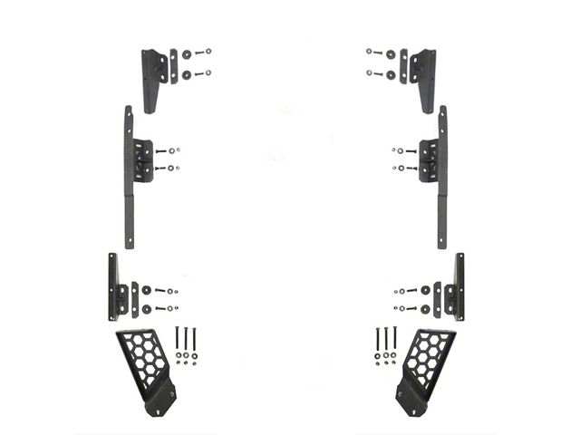 Steel Construction. Go Rhino Jeep Wrangler Mounting Bracket Kit is made from high-grade steel for extreme durability. It’s the perfect choice for off-road use, thanks to weather and impact resistance and aggressive styling. The black textured finish minimizes dirt visibility and ensures easy cleaning.