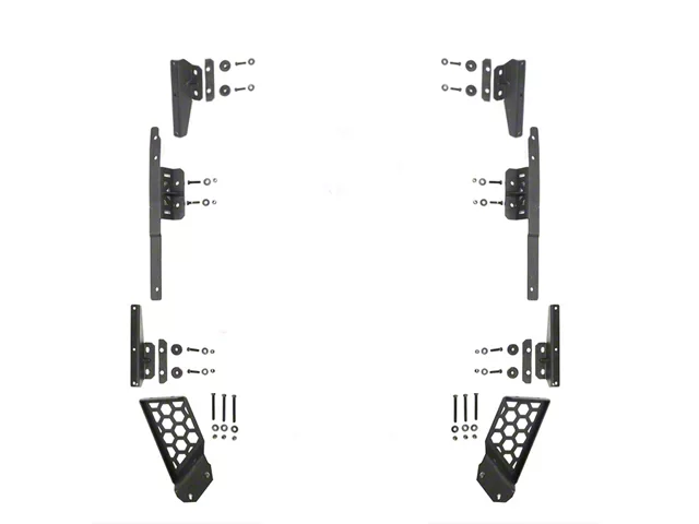 Steel Construction. Go Rhino Jeep Wrangler Mounting Bracket Kit is made from high-grade steel for extreme durability. It’s the perfect choice for off-road use, thanks to weather and impact resistance and aggressive styling. The black textured finish minimizes dirt visibility and ensures easy cleaning.