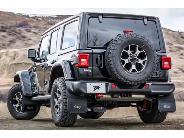 Application. The Mud Flaps with Jeep Logo; Front and Rear fit all 2018-2026 Jeep Wrangler JL models Excluding Rubicon 392 models.