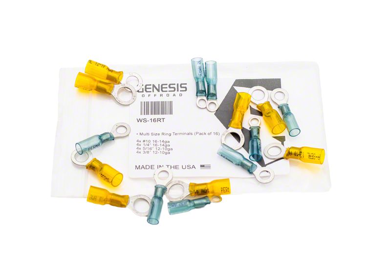 Are you planning on connecting some accessories to the power & ground bus bars? We offer this convenient 16 piece assortment of high quality, adhesive-lined heat shrink ring terminals. These are much better quality than the cheap ring terminals at the auto parts stores.