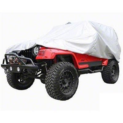 All-Weather Protection. The Multiguard All-Weather Car Cover; Silver is made from a durable, multi-layered fabric designed to provide your Jeep, superior protection against harsh weather conditions, including rain, snow, sun, wind, and dust. This heavy-duty material is both water-resistant and UV-resistant, ensuring your vehicle stays safe and secure in any environment.