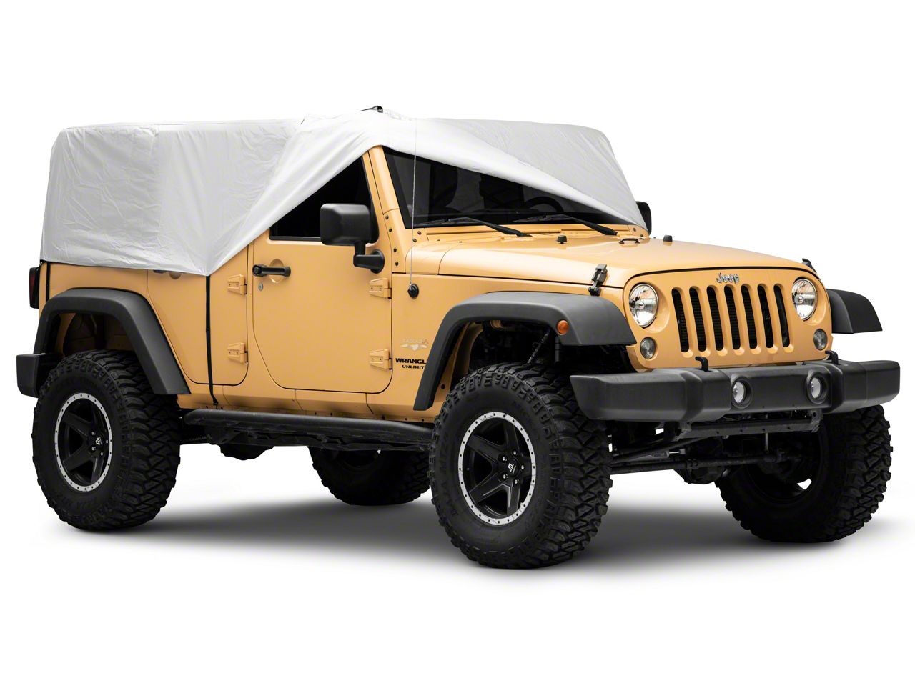 Application. This Silver Multiguard Water Repellent Cab Cover is tailored to fit most Jeep Wrangler models.