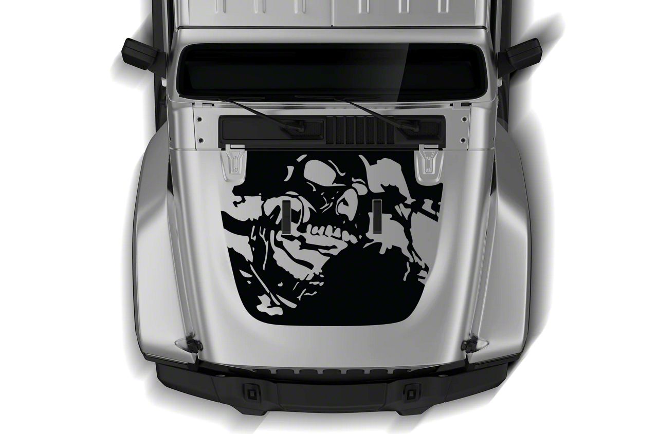 Application. The Nightmare Hood Graphic; Gloss Black fits all 2018 - 2026 Jeep Wrangler JL, excluding Rubicon 392 models.
